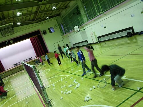 《11/8土バドミントン講座1回目》今年もPTAバドミントン部の皆さんが指導してくださいました。【3、4年生】準備体操をしてから、基礎となるラケットの持ち方と、素振り練習をしました。初めて参加できる3年生は、少人数でしたので、じっくりマンツーマンで…