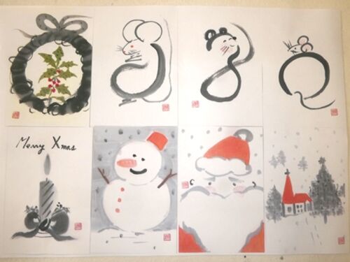今年もクリスマスカードと年賀状に描けるように干支のねずみの描き方を教えていただきます。大野先生がお手本をカラーでコピーしてきてくださいました。墨の濃淡だけで表現される絵もすごいなあと思いますが少し色がはいるとまた楽しくすてきな作品になりま…