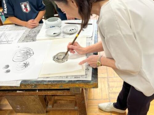 久しぶりの墨絵教室は、大きな画仙紙にのびのび描けるようにと大野先生が画材を2つ準備してくださいました。ハロウインのかぼちゃと、以前、清須橋を描いたことがあるので新大橋のある風景です。先生に描き方を教えていただいて、みんな、描きたいものを選…